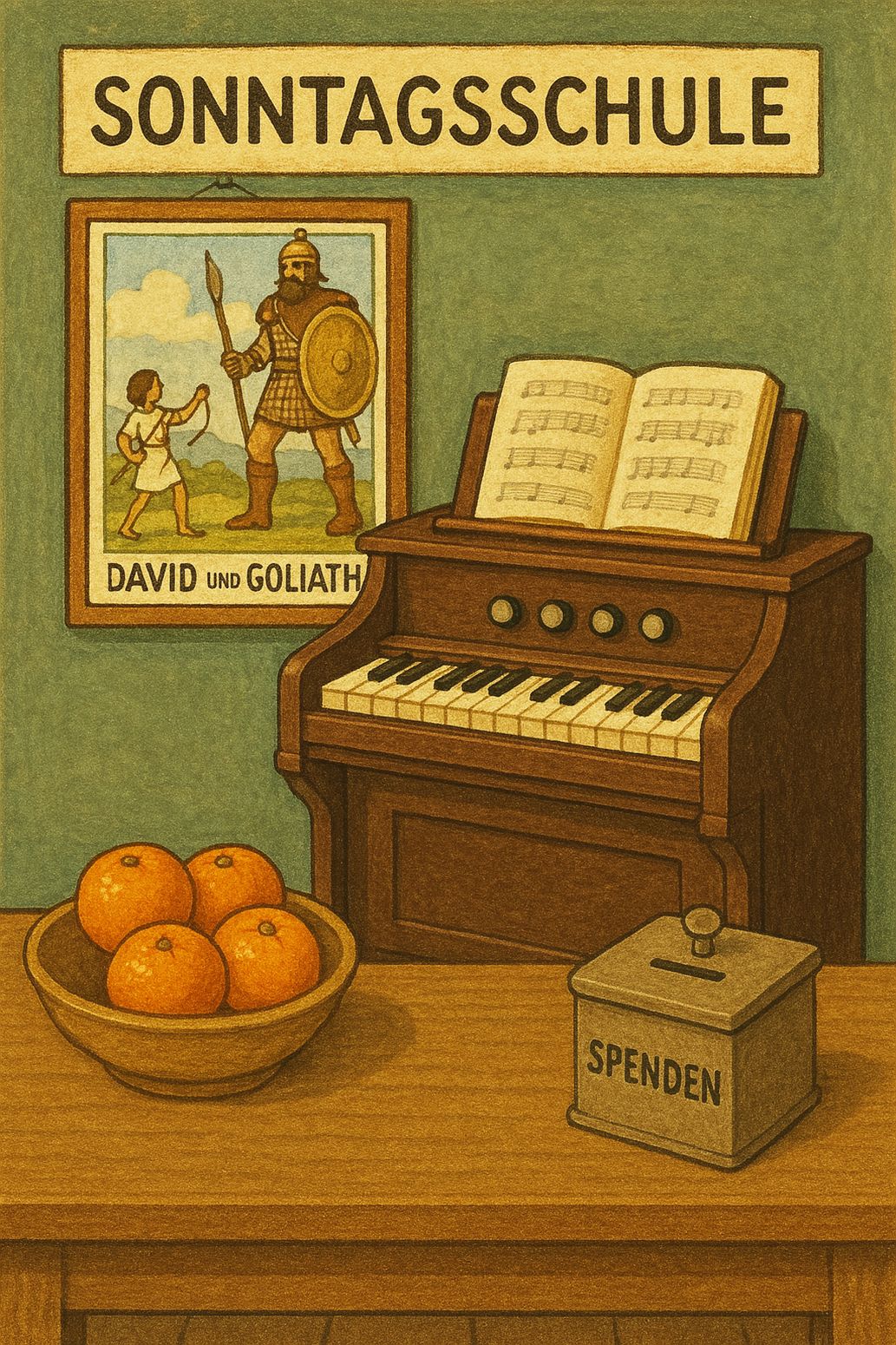 Es war Mitte der Fünfzigerjahre. Ich freute mich riesig, jeden Sonntag aufs Neue, zusammen mit meinen Geschwistern, in die Sonntagschule gehen zu dürfen. Mir ist, als sei es gestern gewesen, als unsere Mutter uns mit mahnenden Worten, uns anständig zu benehmen, in die Sonntagschule schickte. Ob aus religiösen Gründen oder einfach, um von uns vier Geschwistern ein wenig Ruhe und Erholung haben zu können, weiss ich nicht. Ich meinerseits ging jeden Sonntag mit Begeisterung dorthin.