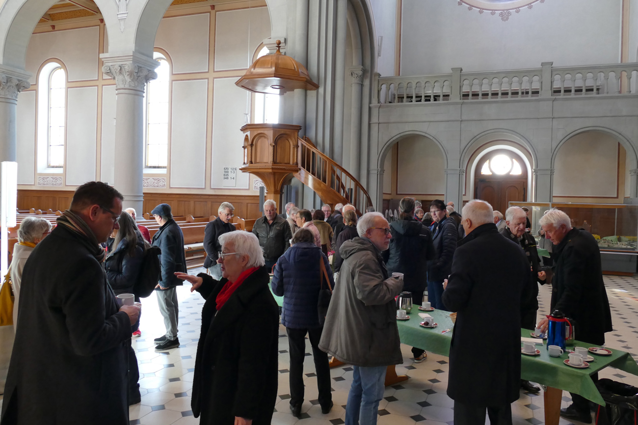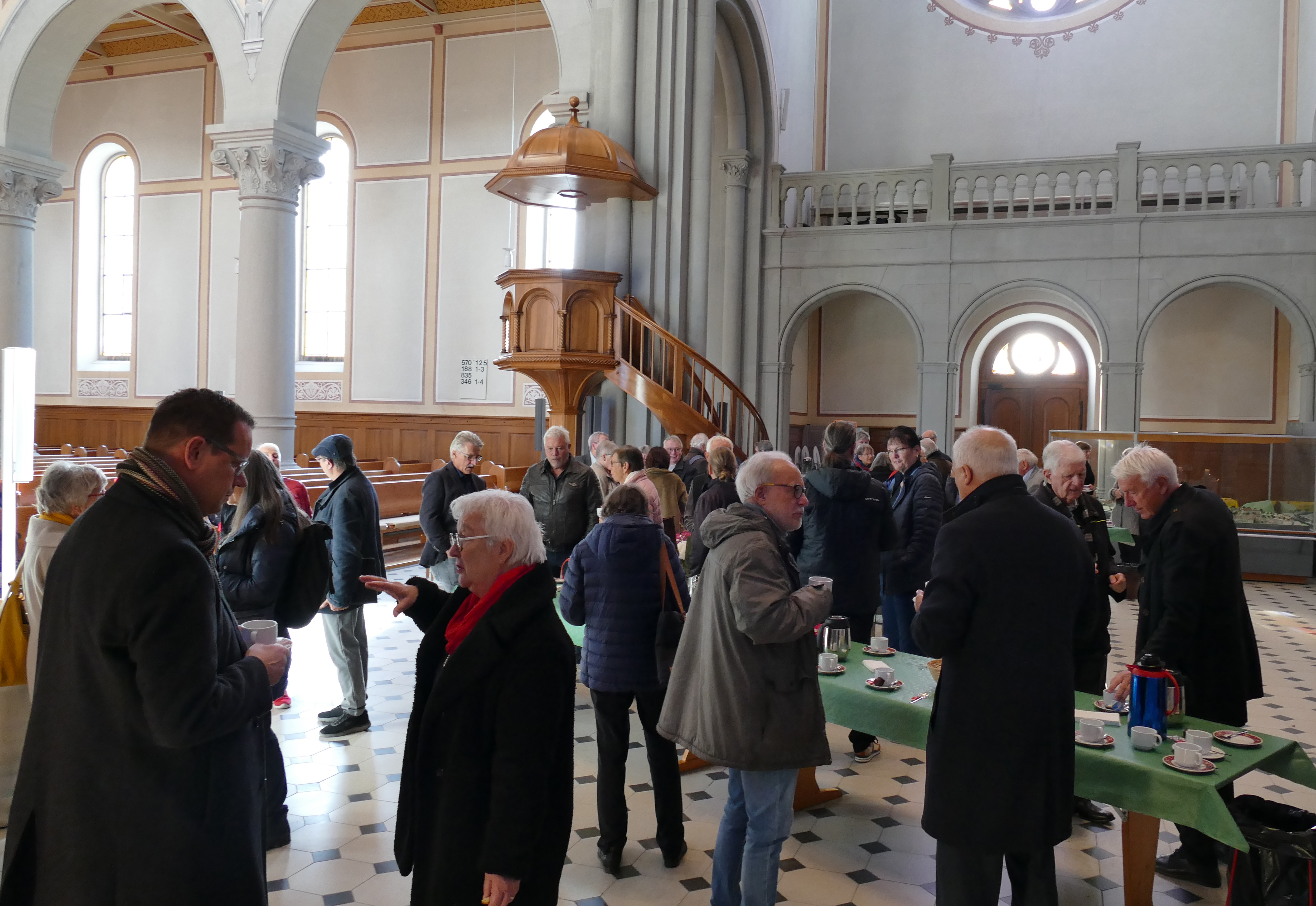 Die einen mögen es ganz pur, manche prickelnd oder süss, andere wieder gerne mit Koffein oder Schuss. Offenbar löst Flüssiges auch die Zungen; denn nach dem Schlussspiel von Organistin Lara Schaffner wurde die Kafi-Znünipause in der Vierung zum regen Austausch genutzt.