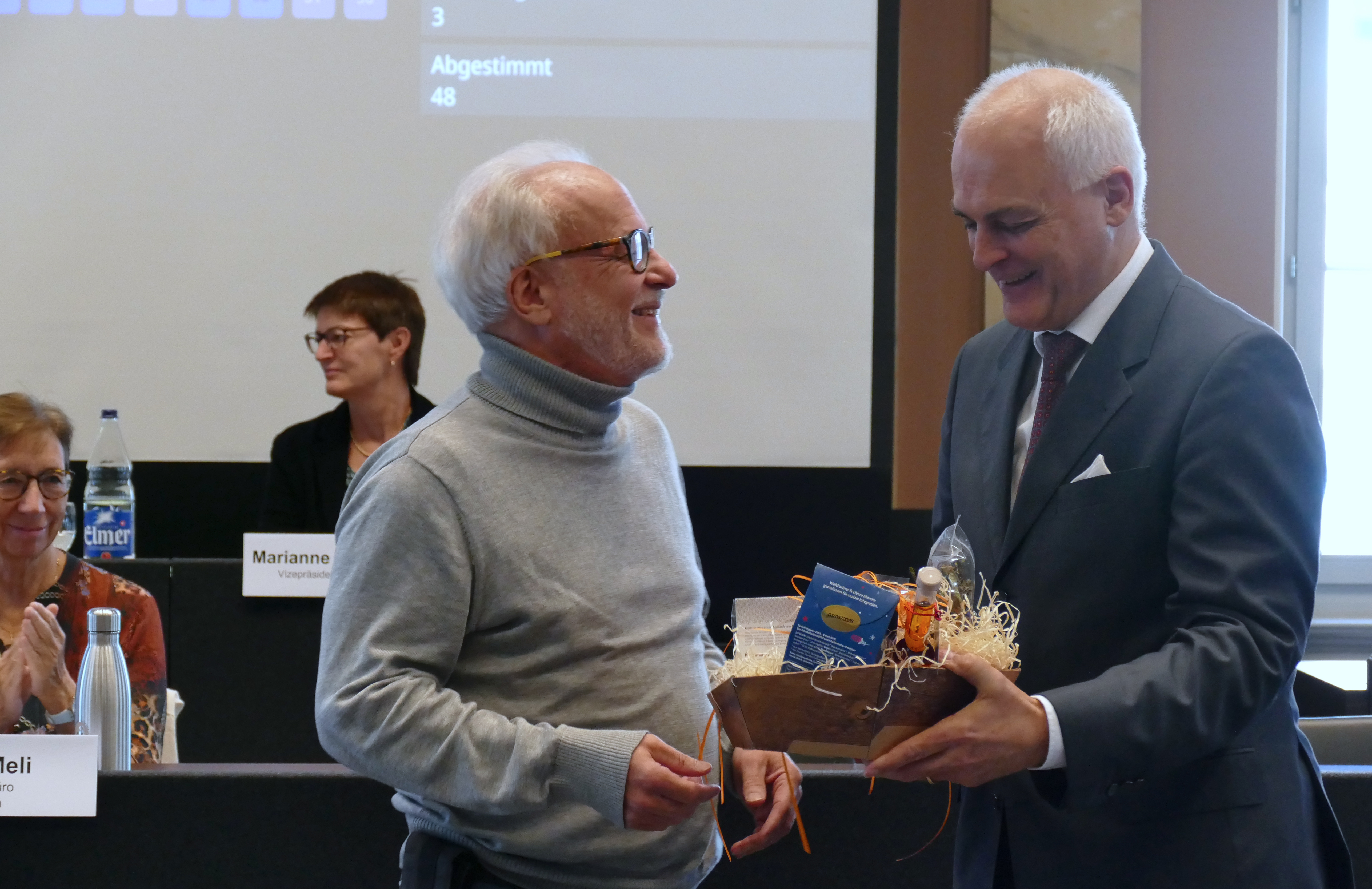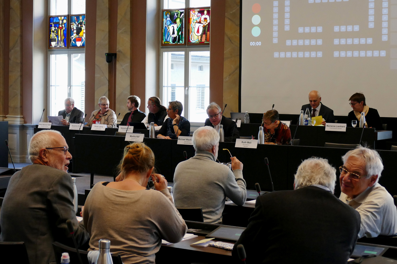 Um 10 Uhr eröffnete dann Synodepräsident Andreas Hefti die Verhandlungen im Rathaus. Als neue Synodale legte Mona Wülser aus Ennenda ihr Gelübde ab. Am Schluss wurde Pfarrer Daniel Zubler (seit 2013 Spitalpfarrer / Pfarramt für Lebensberatung) wegen Erreichung des Pensionsalters mit Dank verabschiedet. Zügig führte Andreas Hefti durch die neun vornehmlich unspektakulären Traktanden. Länger brauchte einzig die Abstimmung zum Art. 218 b der Kirchenordnung „Schutz der persönlichen Integrität.“ Hintergrund: Die reformierte Glarner Landeskirche will sich punkto Missbrauch (körperlich, psychisch, spirituell) proaktiv für einen noch besseren Schutz der persönlichen Integrität einsetzen. „Ein Thema, das auch die jüngste EKS Synode als dringend erkannt hat und mit einer nationalen Studie untersuchen lassen wird“, so Sebastian Doll, der als kantonaler Kirchenratspräsident und somit Vertreter der Glarner Landeskirche gerade in Bern war. Er betont: „Wir müssen hier eine Vorreiter-Rolle einnehmen und ganz klar Nulltoleranz zeigen. Es geht um doppelten Schutz: für die Menschen und auch für die Kirche.“ Man müsse sich bewusst sein, dass auch im Glarnerland Übergriffe passieren. Deshalb sollen nun neu nebst Pfarrpersonen und Mitarbeitenden auch Freiwillige und Ehrenamtliche verpflichtet werden, einen sogenannten Sonderprivatauszug* vorzulegen – wenn sie regelmässig, in nahem Kontakt oder über kurze Zeit intensiv mit Minderjährigen oder besonders Schutzbedürftigen tätig sind. Sinn und Zweck der Erweiterung dieses „Schutzartikels“ waren unbestritten; doch bis der genaue Wortlaut (kursiv) beschlussreif war und mit grossem Mehr angenommen wurde, gab es vier Voten bzw. Anträge zu behandeln. Denn: „Der Paragraph muss im kirchlichen Leben auch praktikabel sein“, sagte etwa Votand Ueli Fäs. Nach gefundener Lösung lobte Andreas Hefti die engagierte und sachlich geführte Debatte – sie entspricht damit auch genau dem Spirit der in seiner Eröffnungsrede erwähnten Werte Akzeptanz, Offenheit, Dialog. „Unterschiede gilt es nicht zu verwischen, sondern zu benennen; denn wo verschiedene Menschen einander begegnen darf es auch Kritik und Reibung geben.“ Aus der kürzlichen 20-Jahr-Feier zur St. Galler Erklärung, die genau diesen interreligiösen Dialog fordert, brachte Hefti etliche Anregungen mit und liess auch den Humor sprechen, welcher mit Beginn der Fasnacht bald wieder das Zepter übernehmen werde. Und als wolle sie auch den Humor des Synodepräsidenten testen, foppte kurz darauf die Elektronik mit zwei fehlerhaften Testabstimmungen die Anwesenden, bevor es dann beim dritten Versuch zuverlässig klappte.