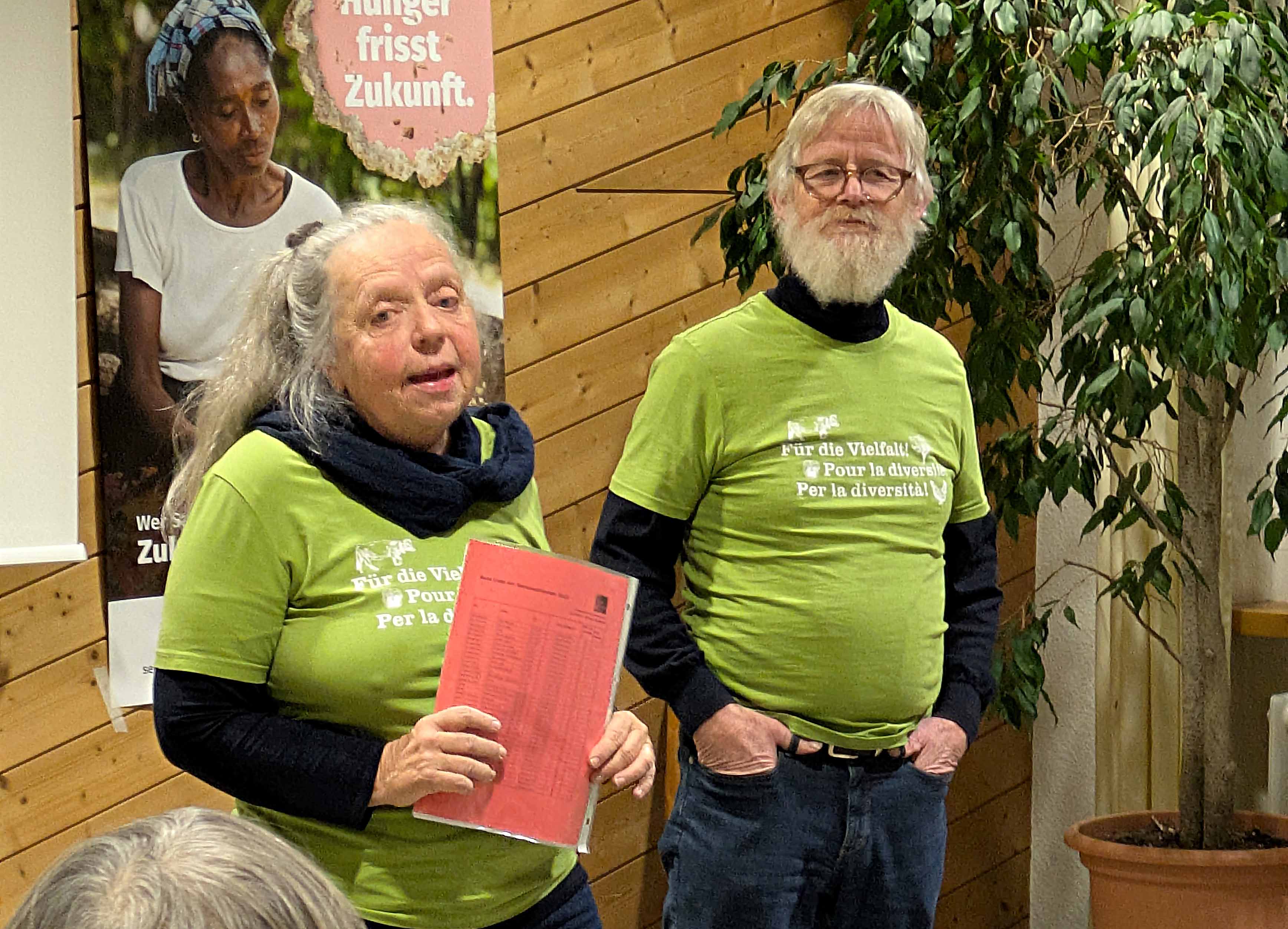 Das gilt aber auch für die Schweiz: Hier hat die Stiftung pro specie rara seit über vierzig Jahren eine wertvolle Pionierarbeit geleistet und Expertise aufgebaut. Der Vortrag der Gründerin Annafried Widmer-Kessler war spannend wie Krimi – sie berichtete vom (weltweiten) Kampf zum Erhalt der genetischen Vielfalt von Nahrungsmittelpflanzen und Tierrassen, oft gegen die Übermacht global agierender Saatgutkonzerne, die auch politisch am längeren Hebel sitzen.