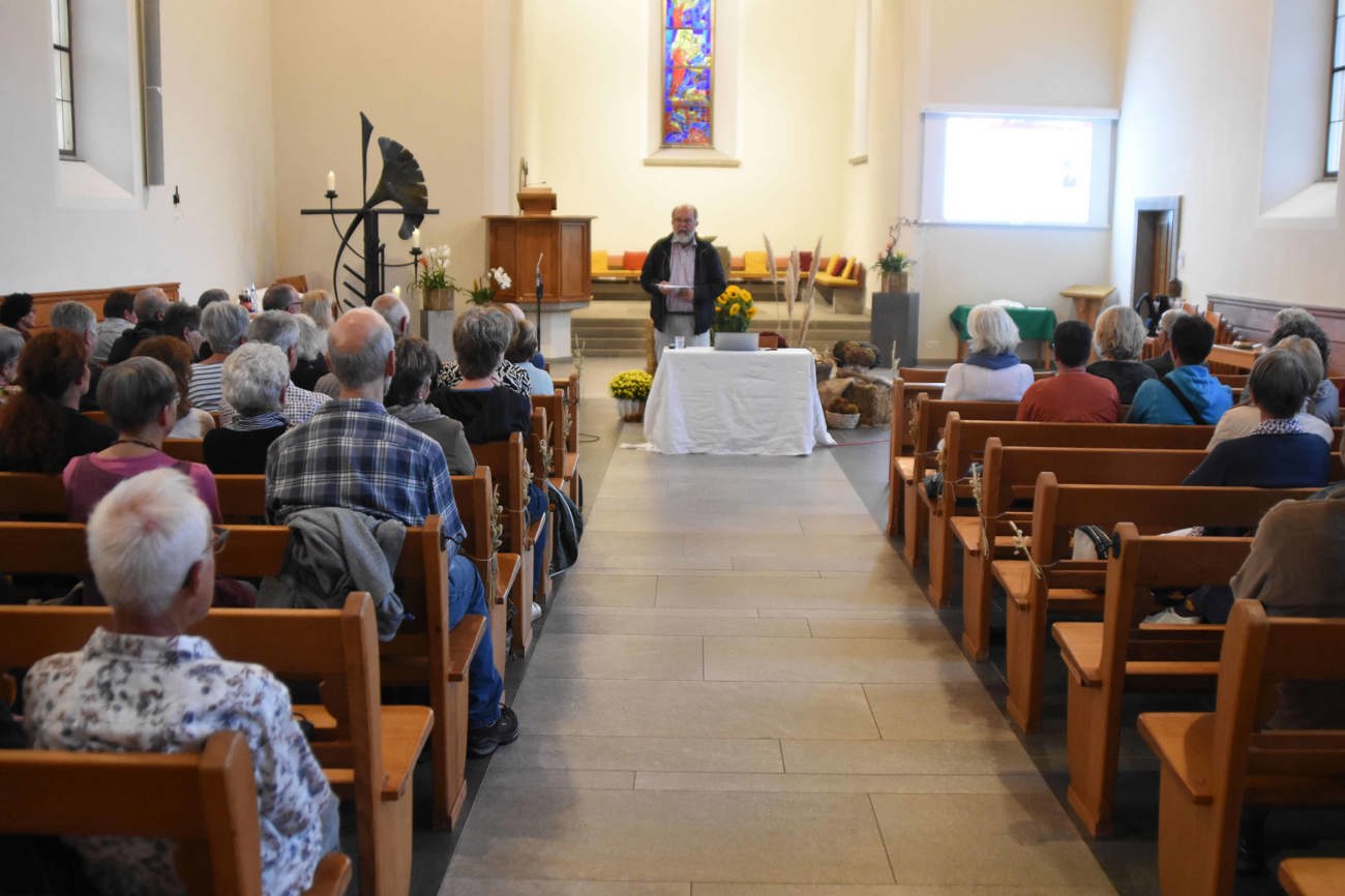 Aktuell gebe es zwei riesige Megatrends in die Milliarden investiert werden, erklärte Dr. Heinz Rüegger zum Beginn seines Referats am Montag 15.September in der reformierten Kirche in Schwanden: «Ewig Leben und nicht alt werden.» Beides verbaue den Menschen aber oft, glücklich in der aktuellen Lebensphase zu sein. Auf der einen Seite verursache es viel Stress, da man ja jünger sein sollte als man ist. Auf der anderen Seite verhindere es, bewusst im Hier und Heute zu leben, da man ja noch so lange Zeit hat. «Zwei Schlagwörter aus dem Barock haben aktuell so viel Bedeutung wie noch nie», meinte der Gerontologe weiter: Erstens bedeute «Memento mori», sich über die eigene Sterblichkeit und somit der Endlichkeit des Lebens bewusst zu sein. Denn nur dies führe, zweitens, zu «carpe diem», dem «Nutzen und Geniessen des Tages», denn «nur wenn die Tage gezählt sind, zählt jeder Tag.»